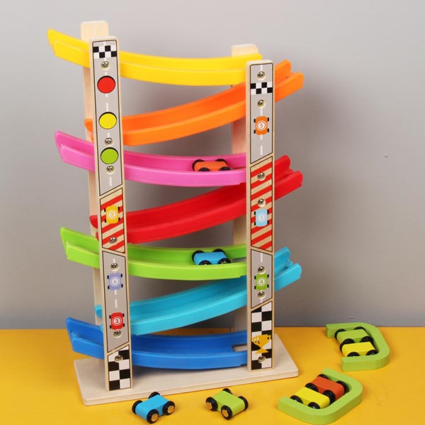 Không quá nhanh như loại đường đua siêu tốc của các bé lớn, đường đua thả dốc giúp bé học hỏi khả năng quan sát, kĩ năng vận động tinh và vận động thô. Loại đồ chơi này được làm bằng chất liệu gỗ nên thân thiện với trẻ nhỏ. Ngoài ra, thiết kế các đường dốc lặp đi lặp lại cho phép trẻ thả ô tô từ trên cao xuống, âm thanh chiếc ô tô va đập vào đường đua rất kích thích trẻ.