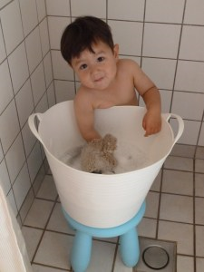 Một trong những hoạt động khiến trẻ thích thú là việc tắm cho búp bê. Đó là một phần của thực hành hoạt động theo phương pháp Montessori. Nếu bạn thực hành hoạt động này tại nhà, bạn hãy chắc chắn là bàn nước tắm/chậu tắm đặt trên nền đất hoặc sỏi vì nếu bạn đặt trên nền cỏ thì cỏ sẽ chết vì nước xà phòng. Mặt khác, bạn cũng nên sử dụng loại xà phòng tắm không làm cay mắt em bé, để khi nước có bắn tung tóe ra ngoài, bắn vào mắt con bạn thì mắt cháu cũng không bị cay.