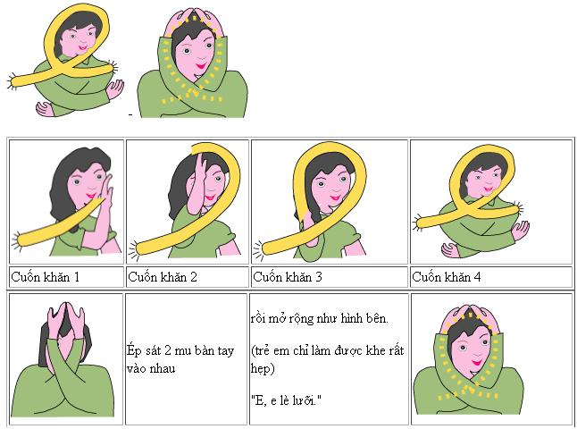 Này má ơi! Khăn làm thành chữ e.