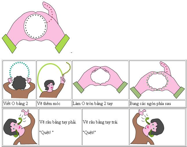 Trên đầu O tròn, con vẽ thêm cái râu.